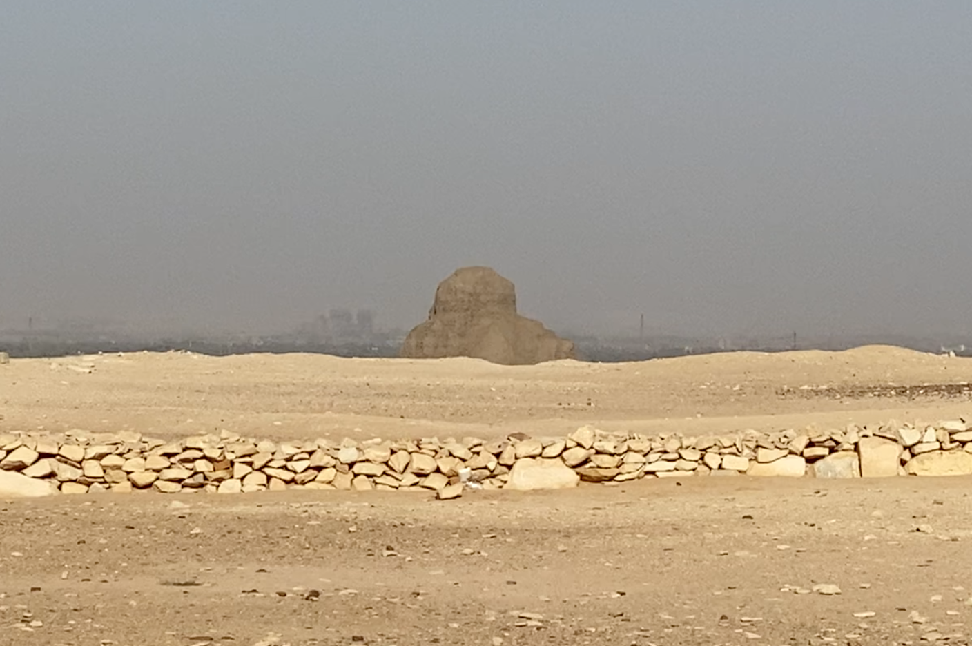 Once you finish at the Red Pyramid, head back to your driver, and they will bring you around the west side of the pyramid along a paved roadway toward the Bent Pyramid. While you drive over, check out the mound of dark rubble off in the distance to the east (back toward the Nile River), to see the Black Pyramid. This pyramid is just a mound of rubble, and tourists are not allowed to approach it, so taking a picture or video from far away is the best you can do.