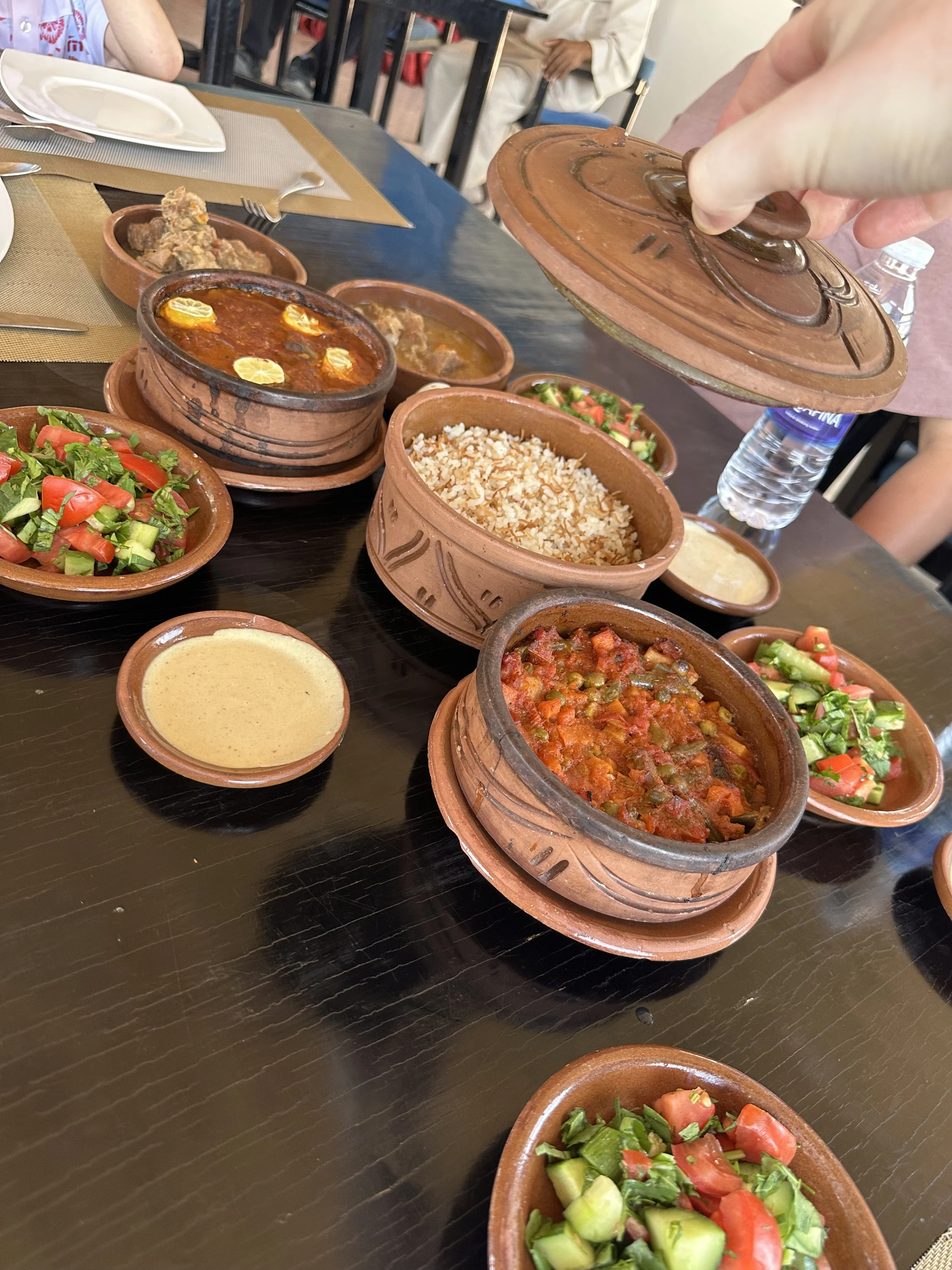 Two different tagins are in this photo - one is a vegan tagin, and the other, bamiya bil lahmeh (okra with beef) - my favorite!