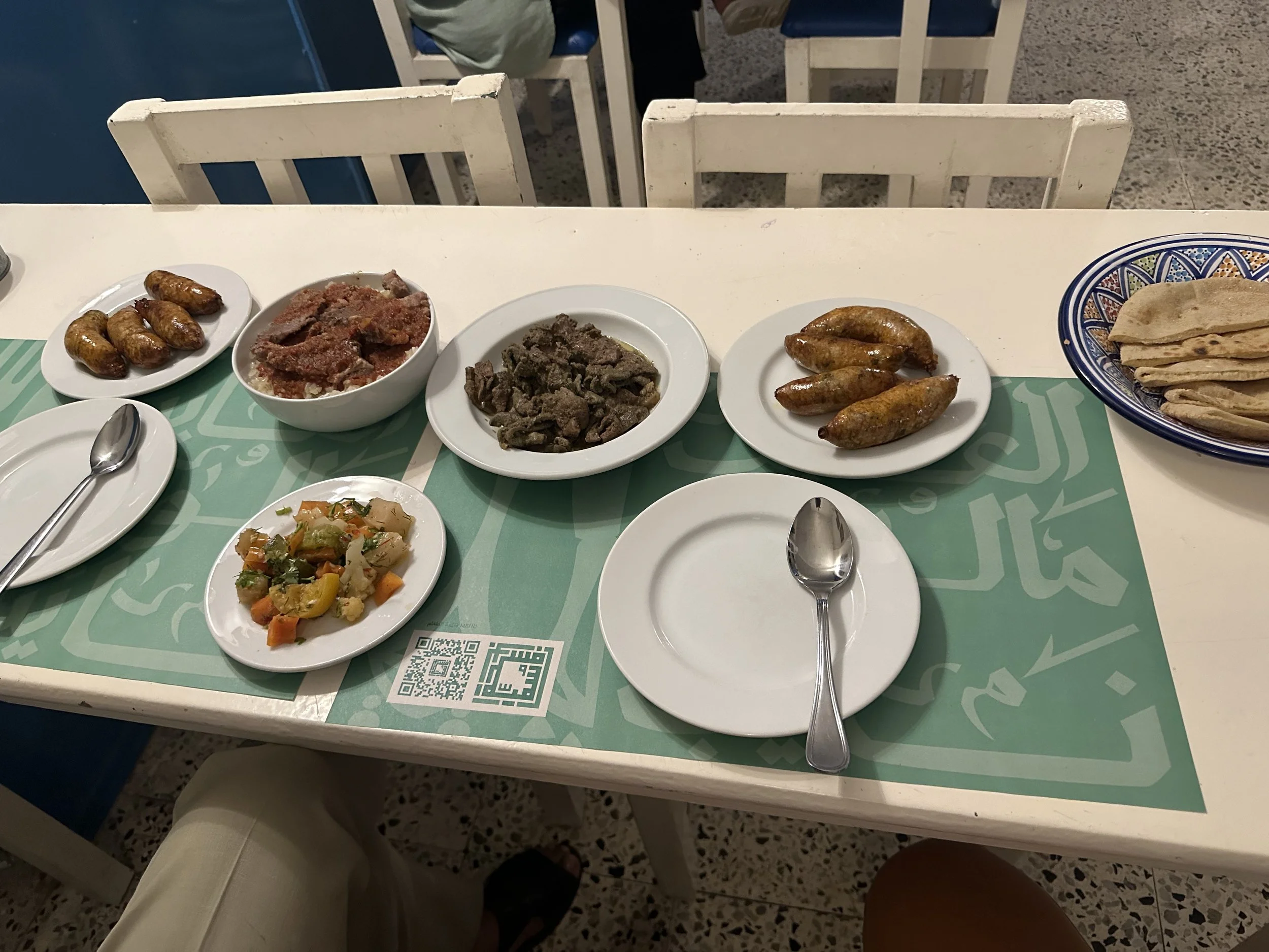 There are two plates of mumbar in this photo - if you just imagine them as rice-filled sausages (and don’t think about the intestines part), they’re easy to eat and delicious!